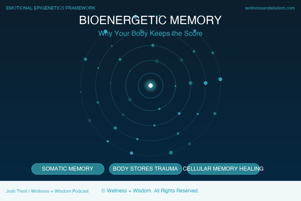 I have been exploring these ideas through the lens of the Emotional Epigenetics framework I teach on the Wellness + Wisdom Podcast, and this article is my most complete explanation yet of what bioenergetic memory is, how it forms, how to recognize it in your own life, and most importantly, what you can do to free yourself from the patterns it creates. This is not a story about what went wrong. This is a story about how much your body can heal.
