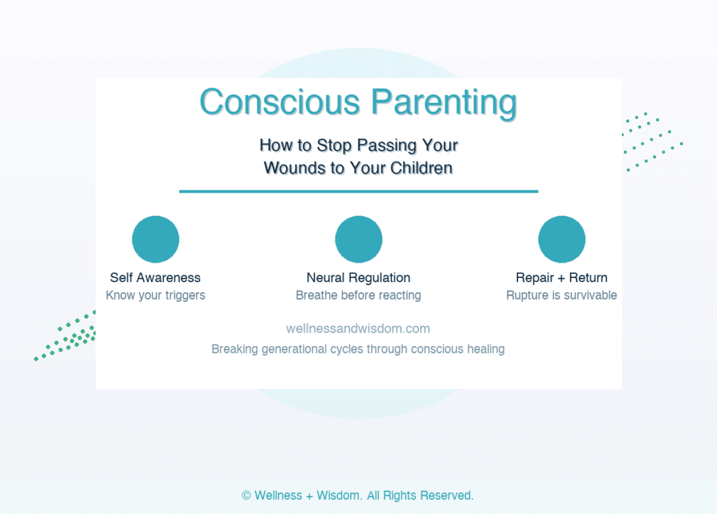I have explored this in depth on the Wellness + Wisdom Podcast and in my own healing journey as a father. The moment I stopped reacting to my daughter from my own childhood wounding and started responding to her from a grounded, present place, something shifted that I can only describe as structural. It was not just behavioral. It felt like something in my body changed. Because it had.