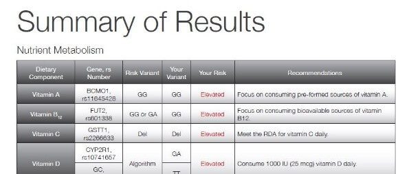 This was followed by a summary of my results which painted the big picture of my genes: whether my body has typical responses, elevated risks, or diminished responses to different dietary or exercise factors