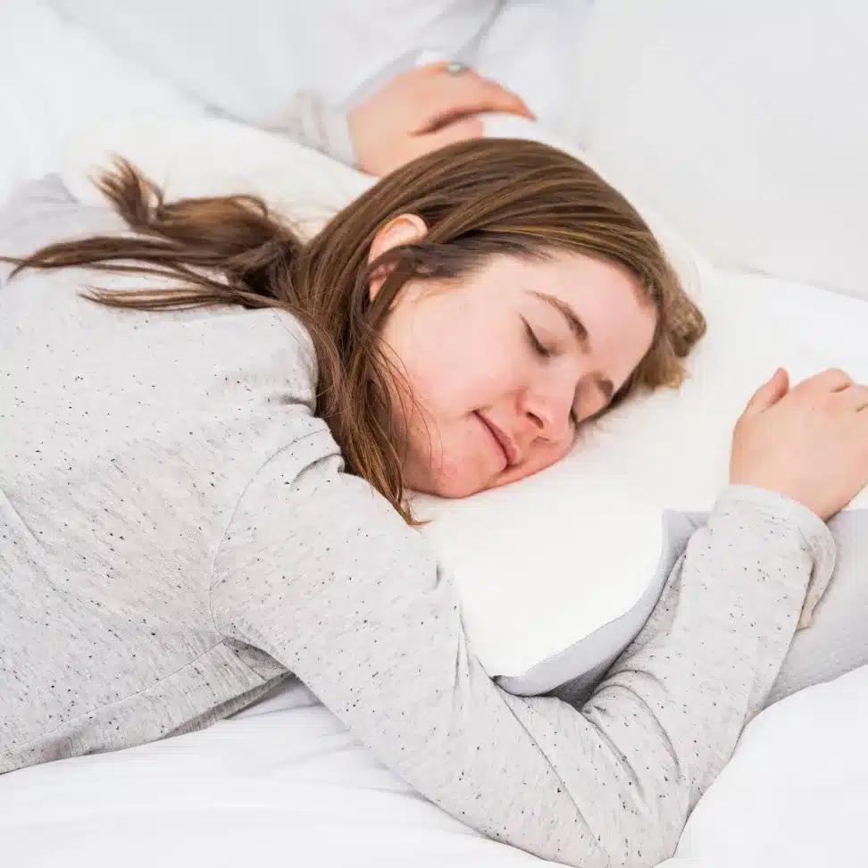 Side sleepers: If you sleep on your side, you’re not alone — it’s actually the most popular sleep position in the US! Simply rest one arm in either of Dream Deep’s side contours for effortless comfort.